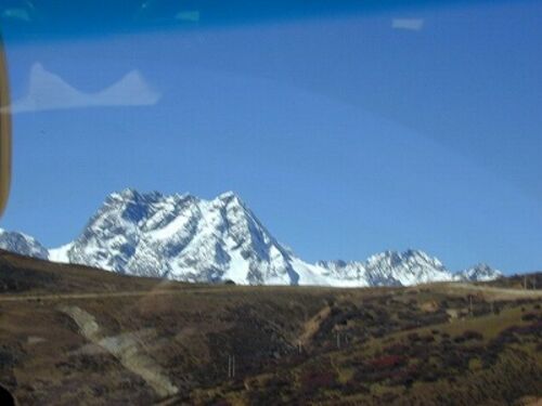 峠の向こうから白茫雪山がニョキニョキと姿を現す。 驚いた事に、 この辺りで野宿をした友人がいる。 しかも、昆明から此処まで自転車を漕いで来た。 当時はもう少し雪が有って、 手前の谷間を雪を踏んで登ったらしい。 簡易テントの中で夜を明かしたが、 前…